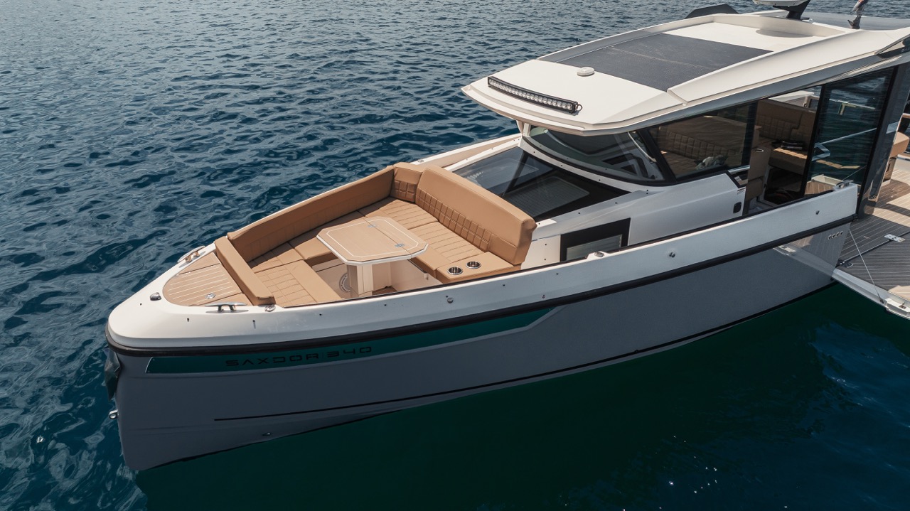 The Saxdor 340 GTWA features innovative foldable terraces that expand the deck space, creating an open and inviting area for relaxation and entertainment. Perfect for enjoying the view or hosting gatherings, these terraces transform the boat into your private island.