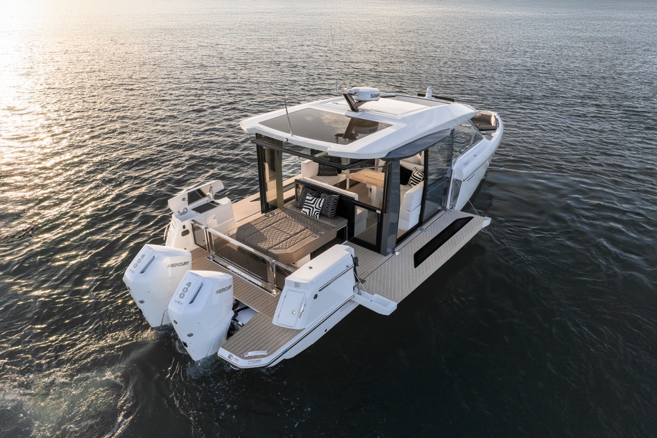 The Saxdor 400 GTC, the latest addition to their flagship series, is engineered for twin outboard rigs with our unique naval architecture, guaranteeing an unforgettable journey every time.