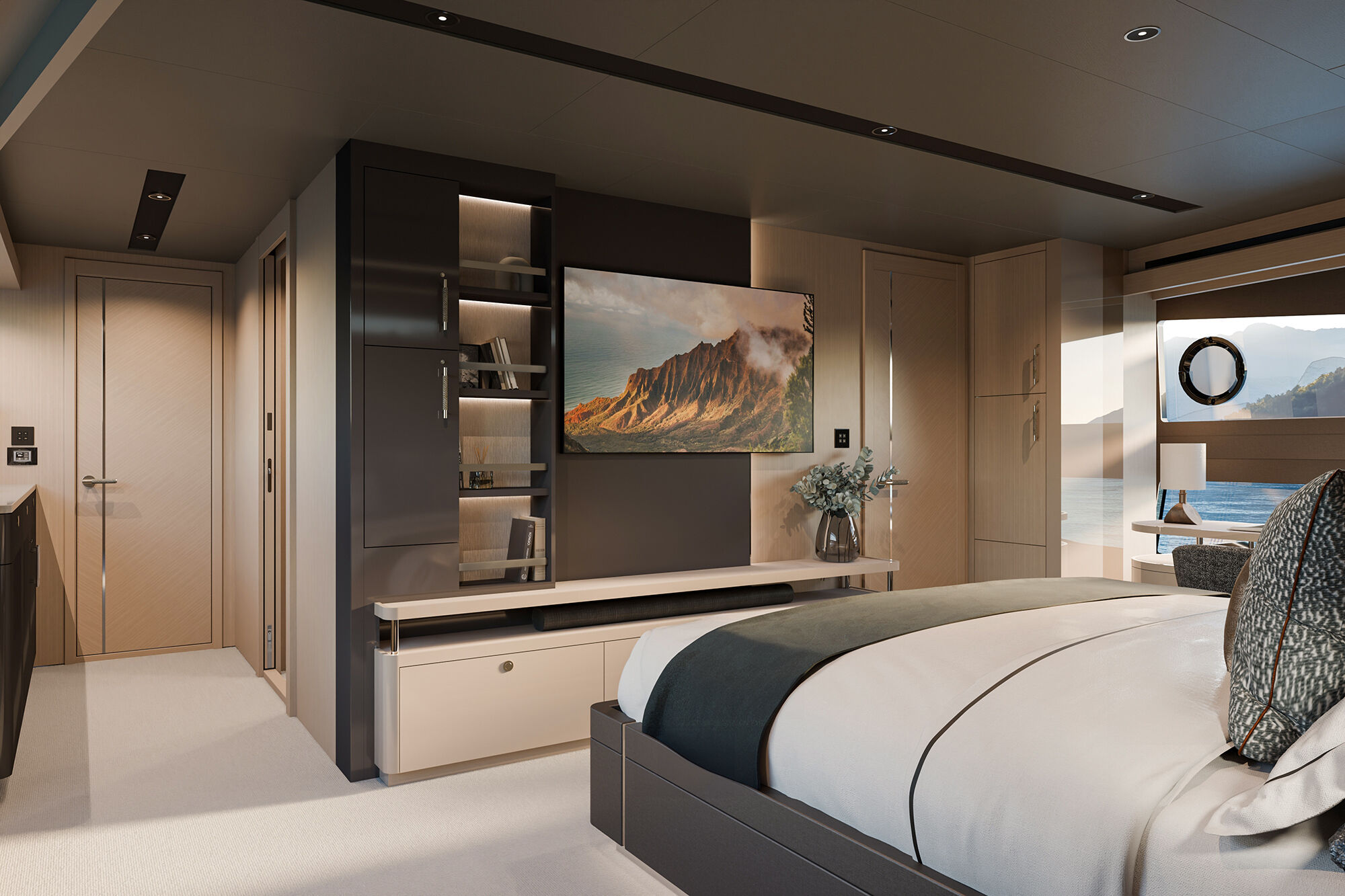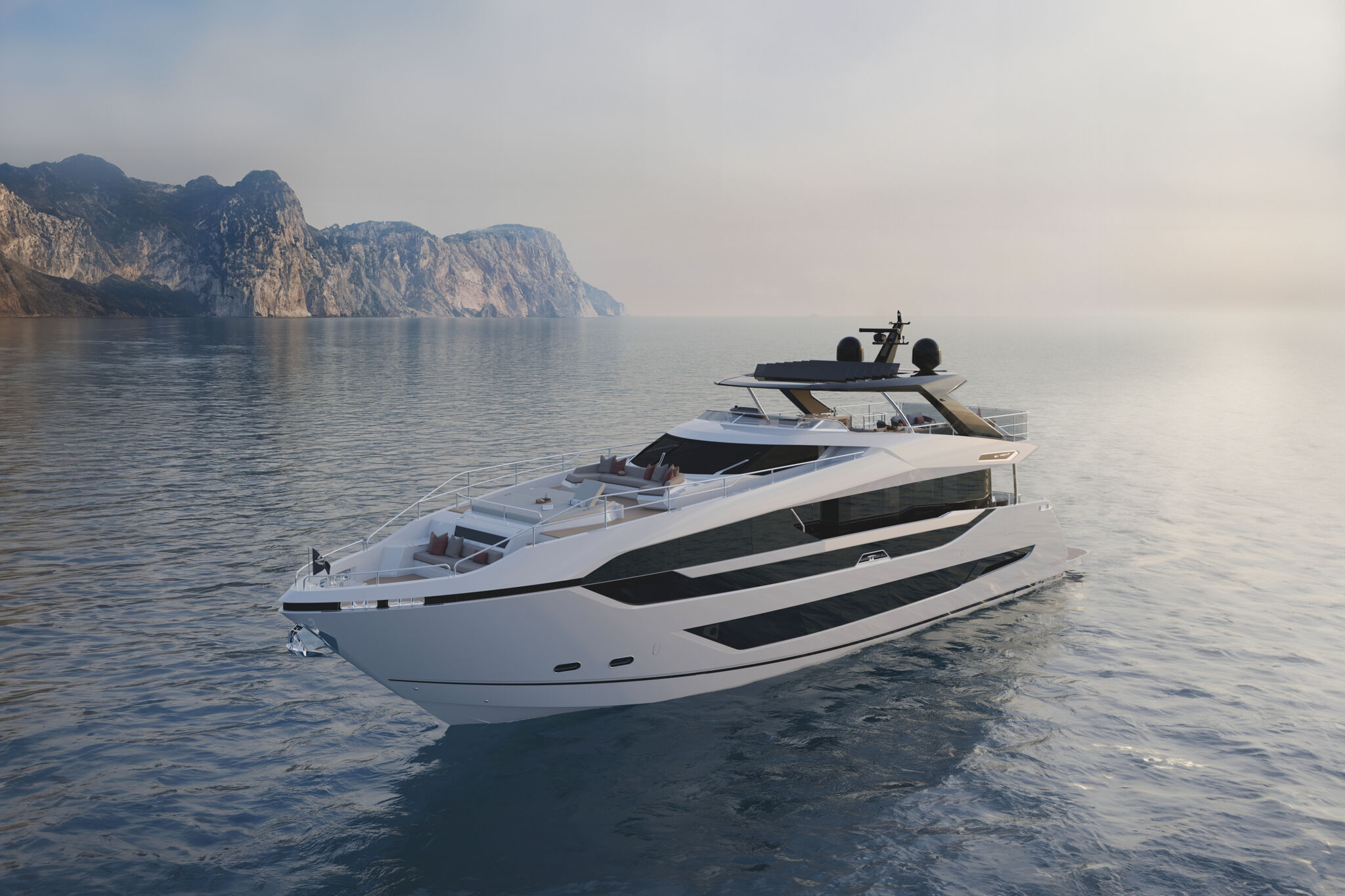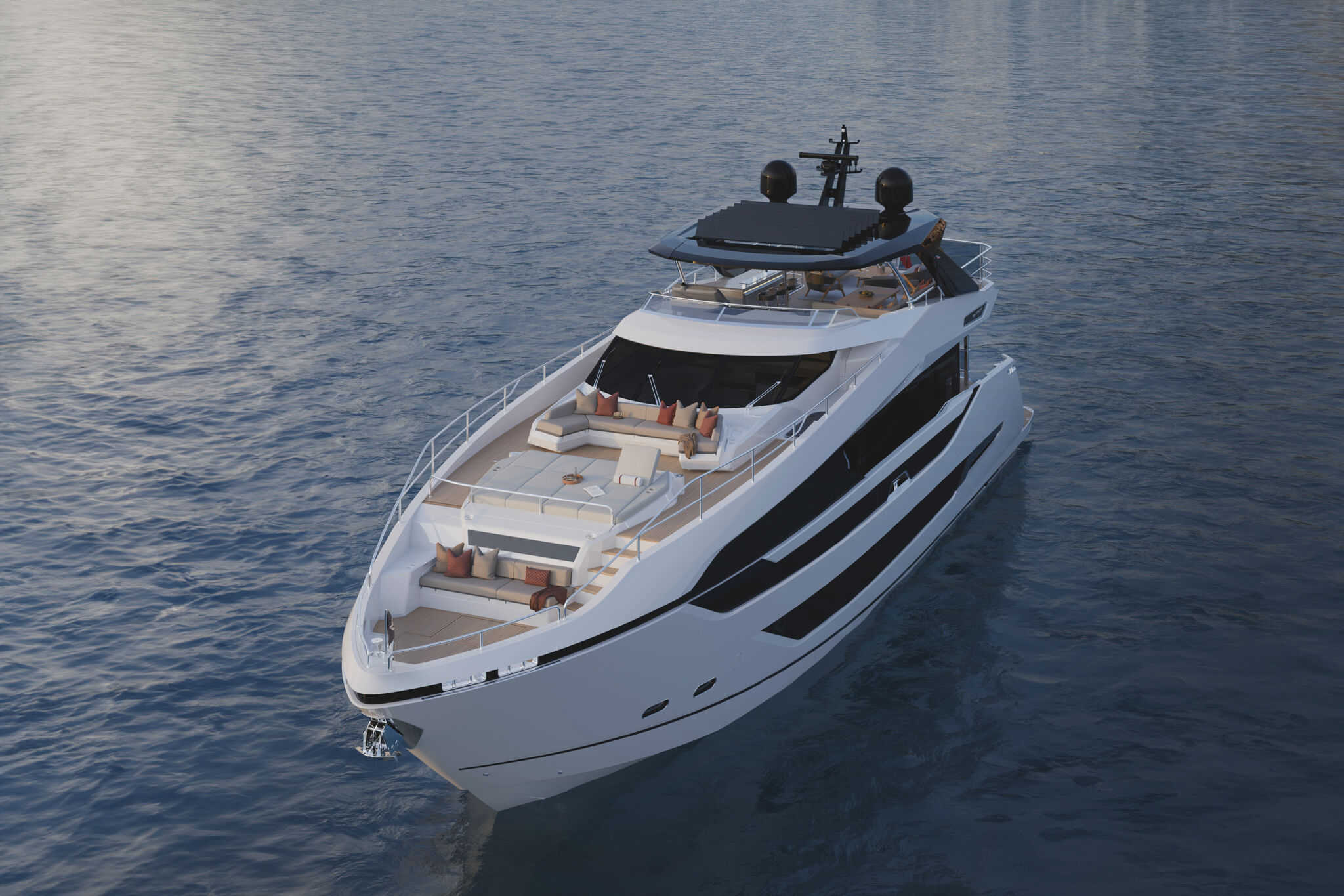 Accommodating up to ten guests in five beautifully appointed staterooms, each with en-suite facilities, the 94 Yacht redefines onboard privacy. Separate crew quarters ensure seamless service, while the expansive flybridge, panoramic saloon, and X-TEND™ sunbed system create inviting spaces for both connection and seclusion.