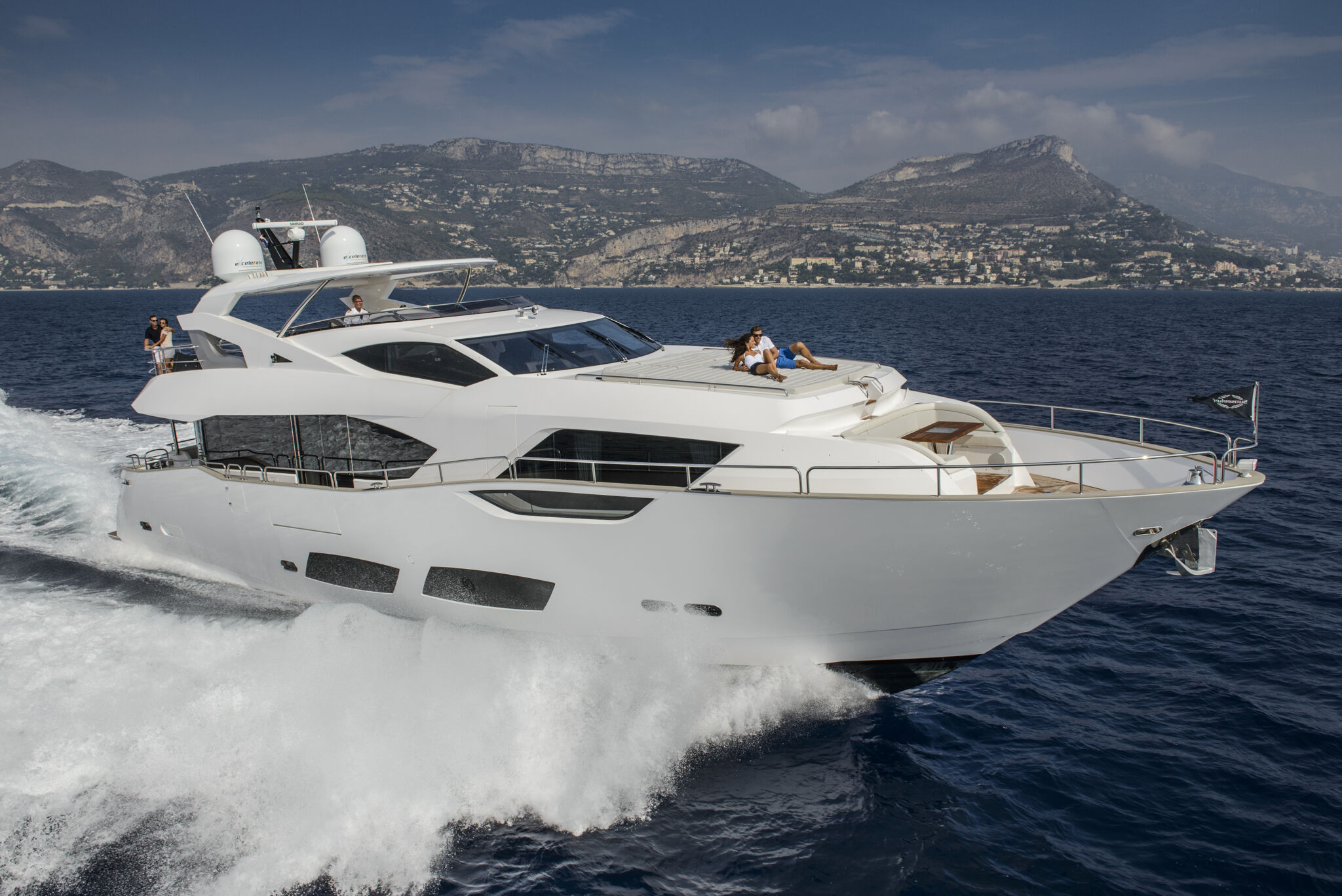 The Sunseeker 95 Yacht's stunning lines and unique layout exemplifies Sunseeker's cutting-edge design and innovative build processes, combining a superyacht feel with all the practical advantages of a motor yacht in this size category.
