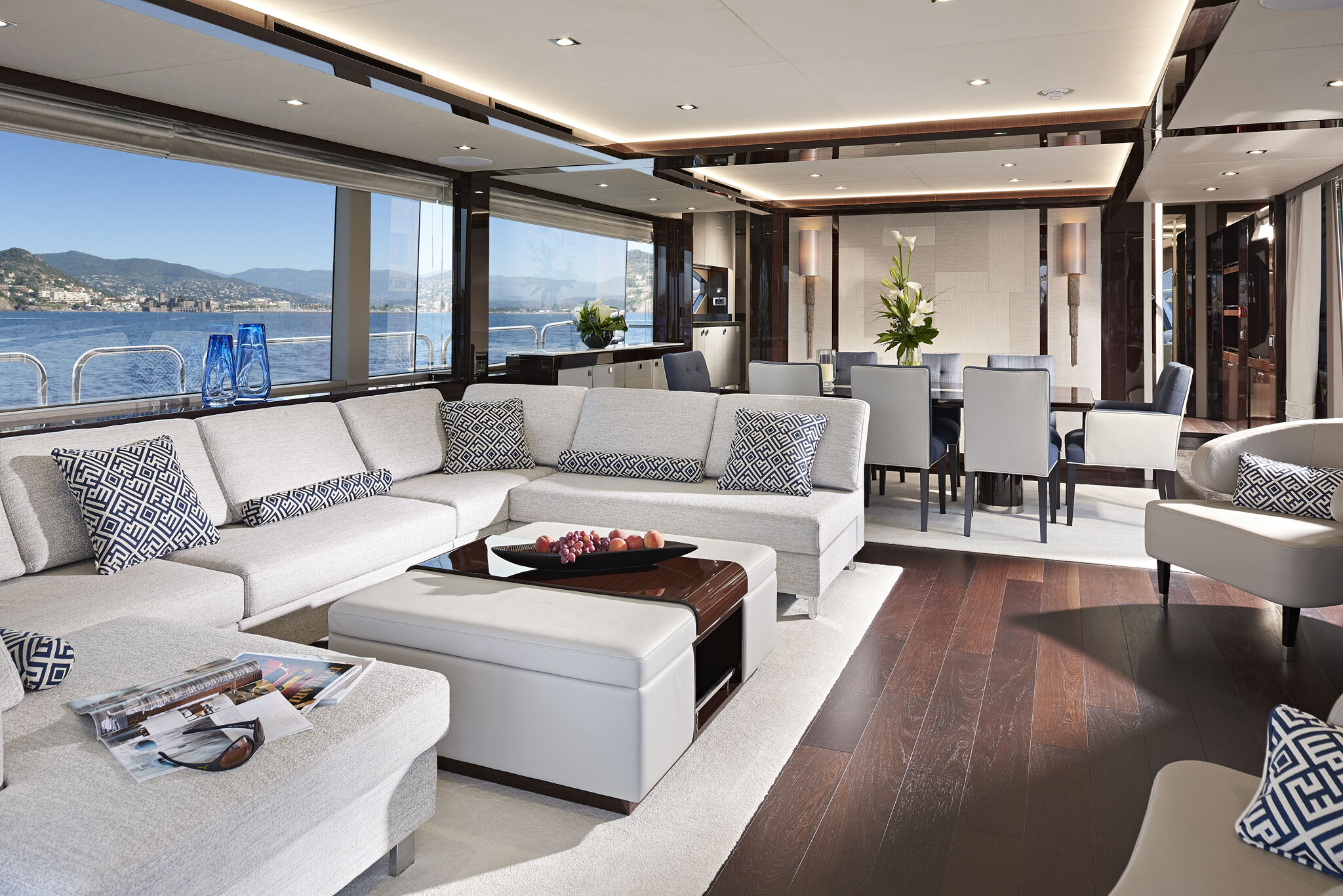 A standout feature is its unique main deck layout with a special master cabin configuration for even greater flexibility and space from a class above. With the luxurious master stateroom berth on the main deck, a forward staircase leads to a mid-level dressing area and sumptuous en-suite. The raised pilot house offers greater flexibility contributing to the more expansive main deck layout which is truly remarkable for this size of motor yacht. Above deck, the spacious flybridge is well equipped with a second helm, bar, optional hot tub and plenty of seating for guests to be entertained in style. The 95 Yacht is based on the classic deep V hull with luxury performance at its heart.