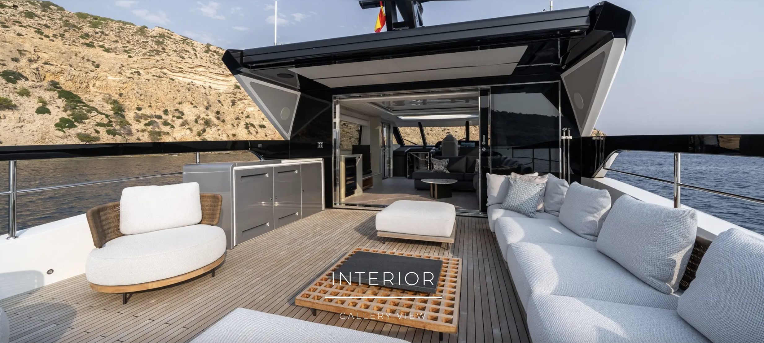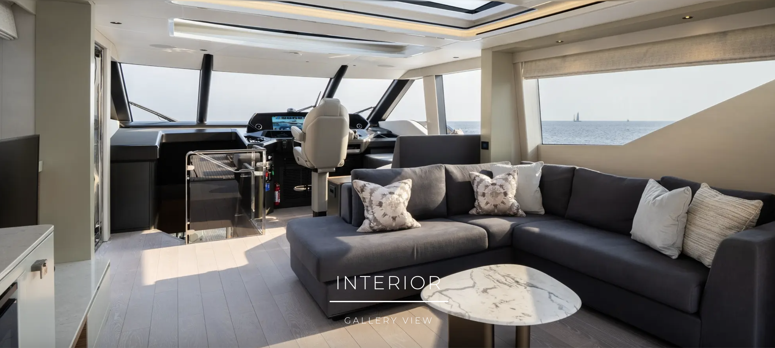 With a completely enclosed upper deck and single helm station, the 82 Ocean Enclosed leaves ample space on board for multi-purpose use, thanks to maximised internal volume and gross tonnage, especially in her seamless, extended saloon and upper deck area The upper deck area has similarities to a Portuguese deck with more space, allowing usable, social areas for seating, sun pads and spa tub options. Throughout, design layouts are completely customisable enabling owners to personalise to their own style and practical needs. This is made more achievable thanks to minimal intrusions such as fixed furniture as well as single-level flooring throughout the majority of space on board.