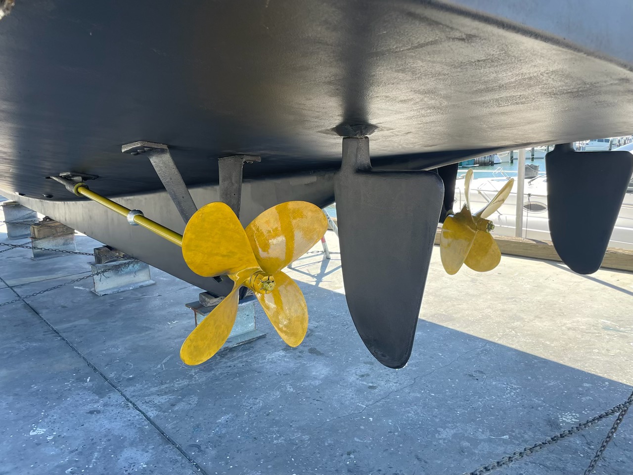 The fuel tanks were replaced with stainless steel tanks in 2021. While that was being done, both engines were removed and the cooling systems completely stripped and rebuilt to ensure longevity for the reliable 375hp Caterpillar 3208 engines. The engine room presents as new, and is monitored with 4 cameras. The Caterpillar engines and Onan genset have been meticulously serviced since the refit and have been totally reliable. The teak decks, both below and on the flybridge, were replaced at the time of the refit. A full suite of Raymarine instruments, including 12’’ Hybridtouch screens, autopilot, AIS, Doppler radar and VHF radio, was installed at the same time. All instruments are duplicated at the flybridge helm. An aluminium hull AB rib with 10hp Tohatsu outboard is cradled on the aft deck with an electric Davit for easy launching and retrieval.