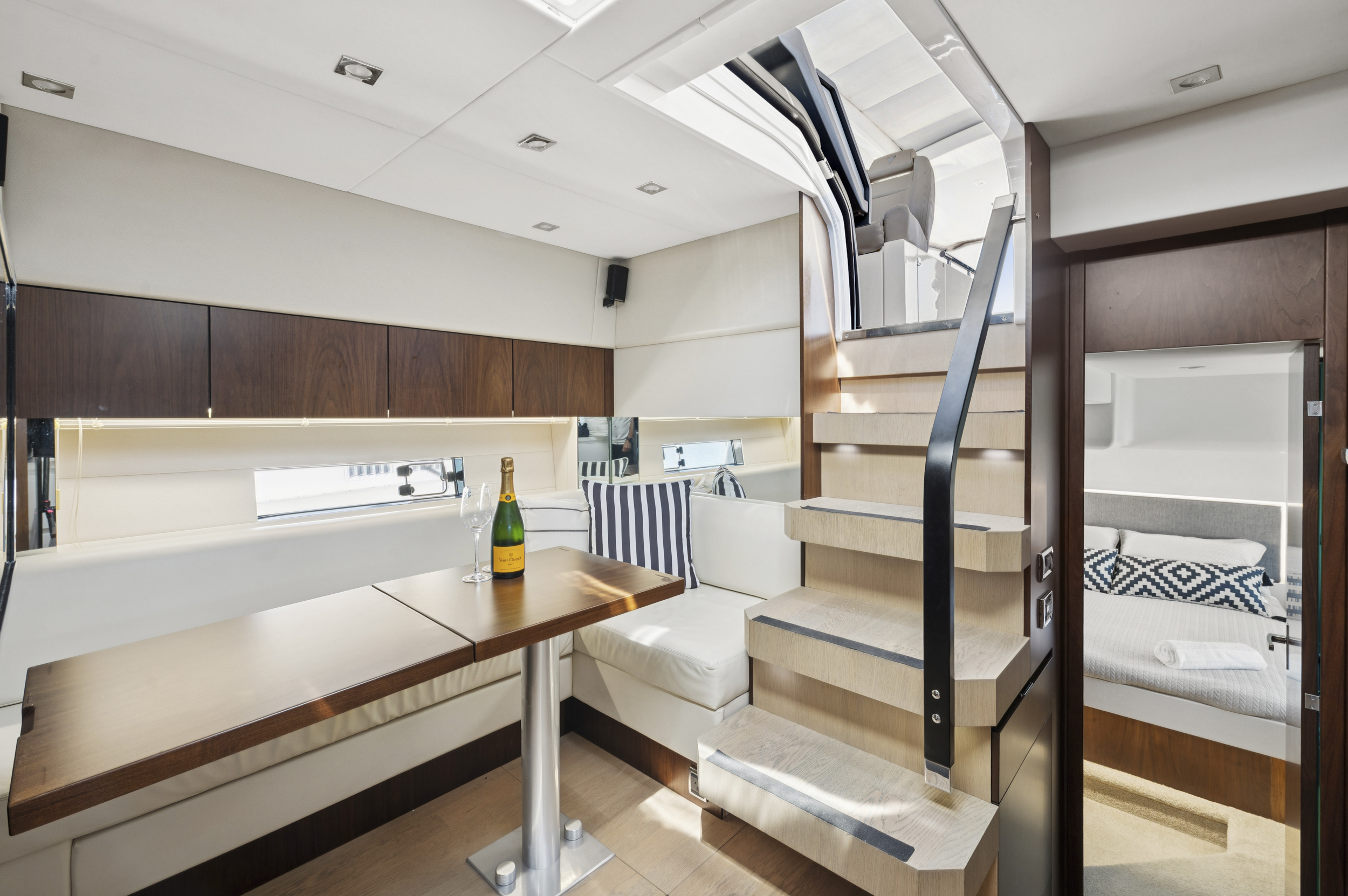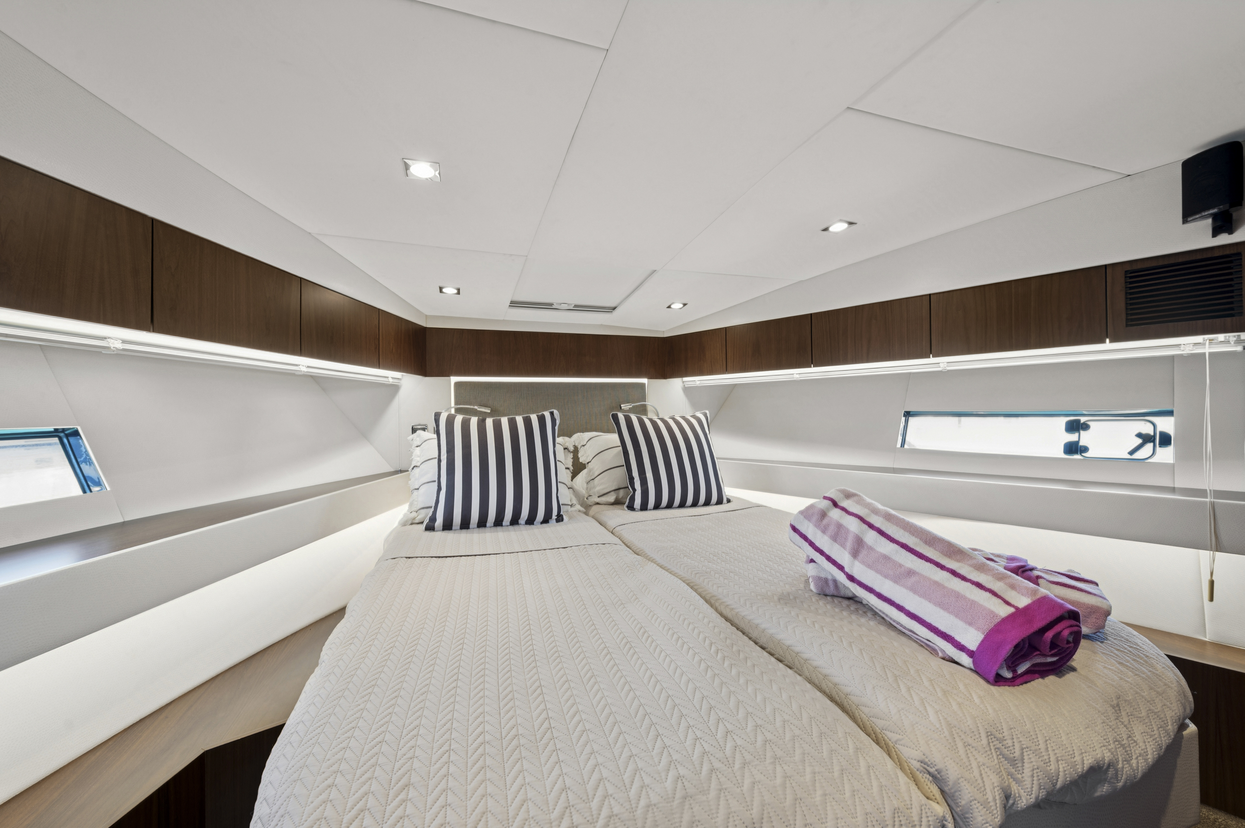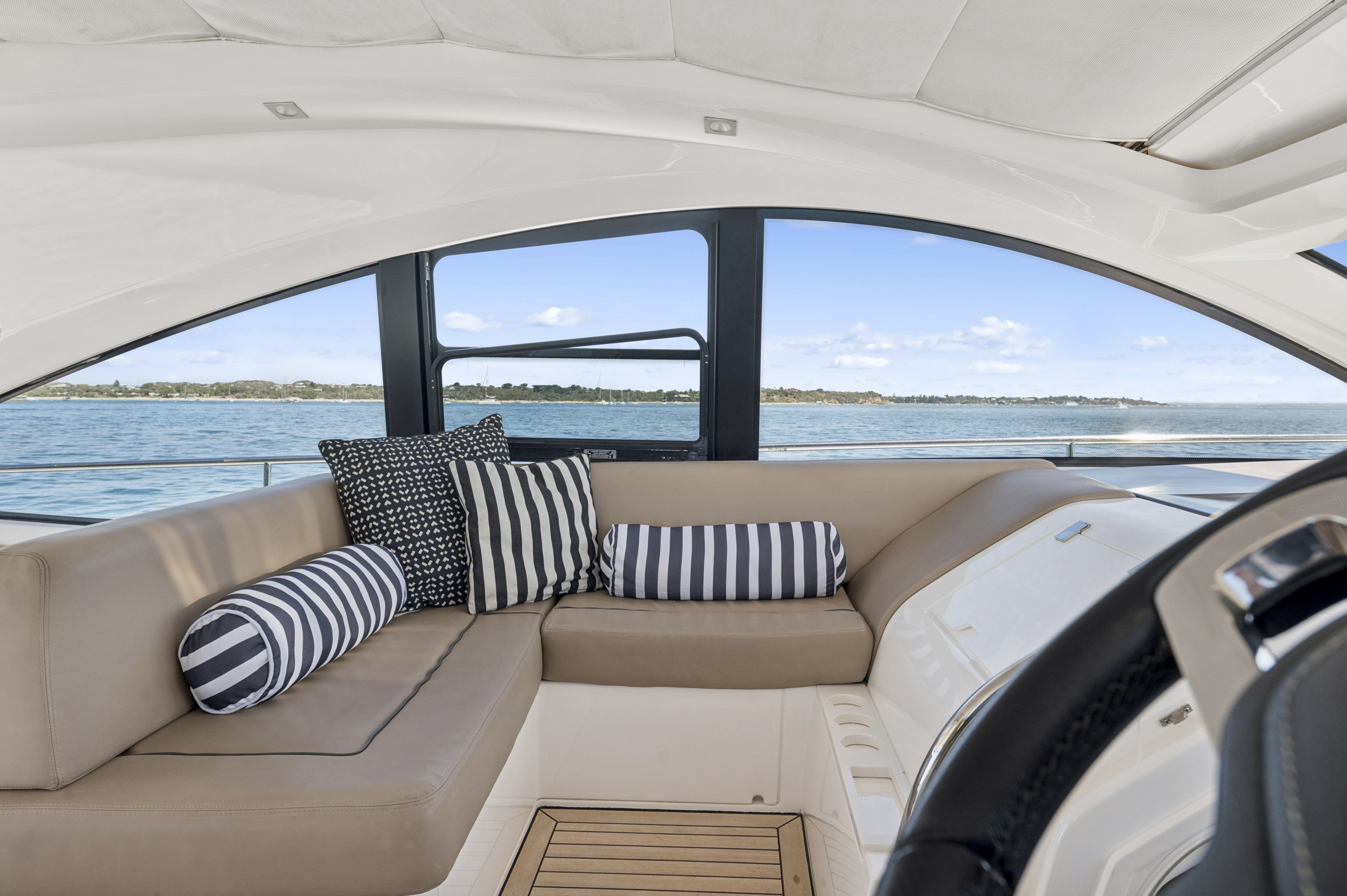 Powered by twin Volvo IPS 600 engines, she delivers effortless acceleration, impressive fuel efficiency, and precise joystick manoeuvrability, making close-quarters handling simple and stress-free. The IPS system provides smooth, confident offshore performance while maintaining outstanding onboard comfort.