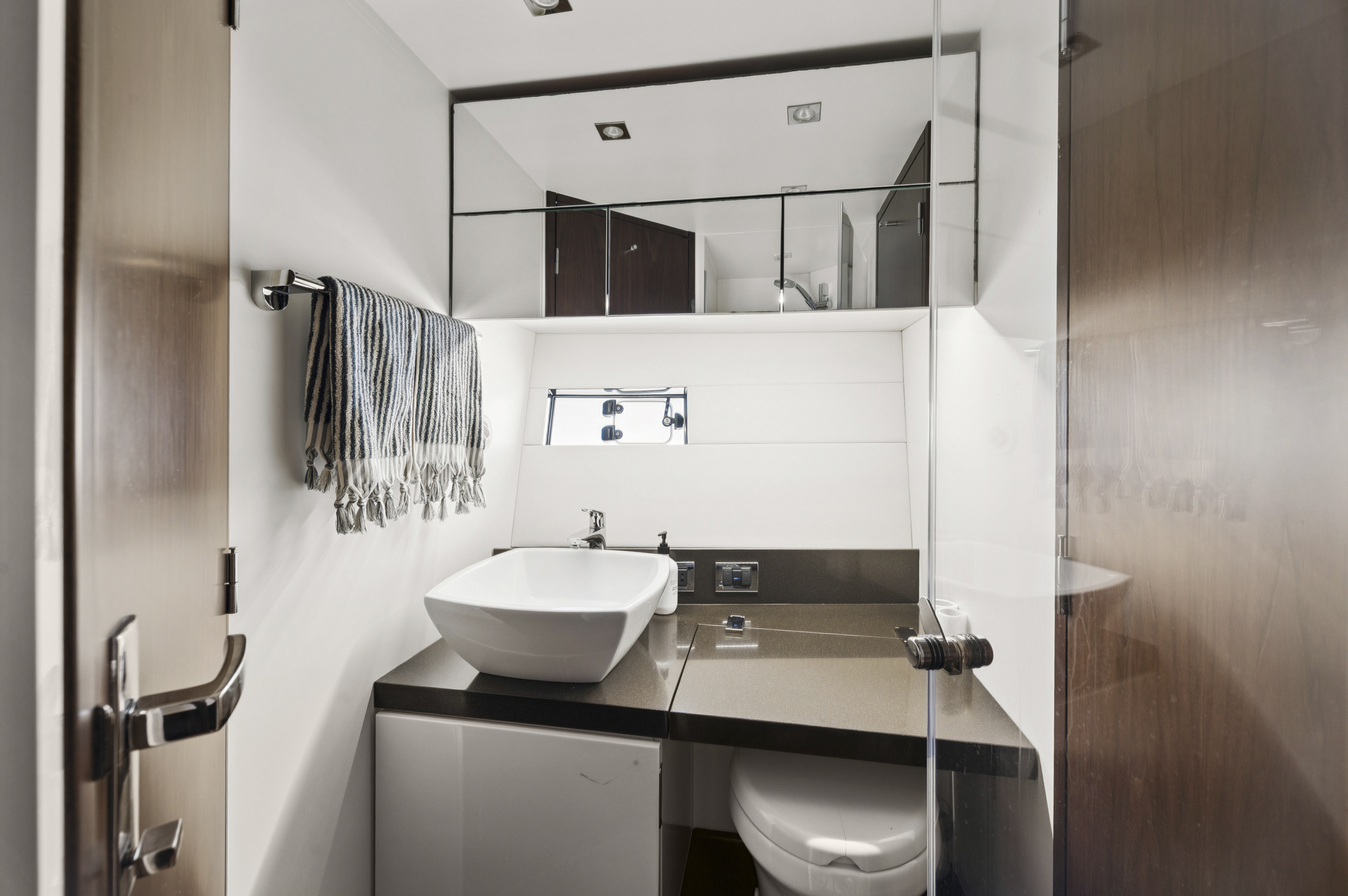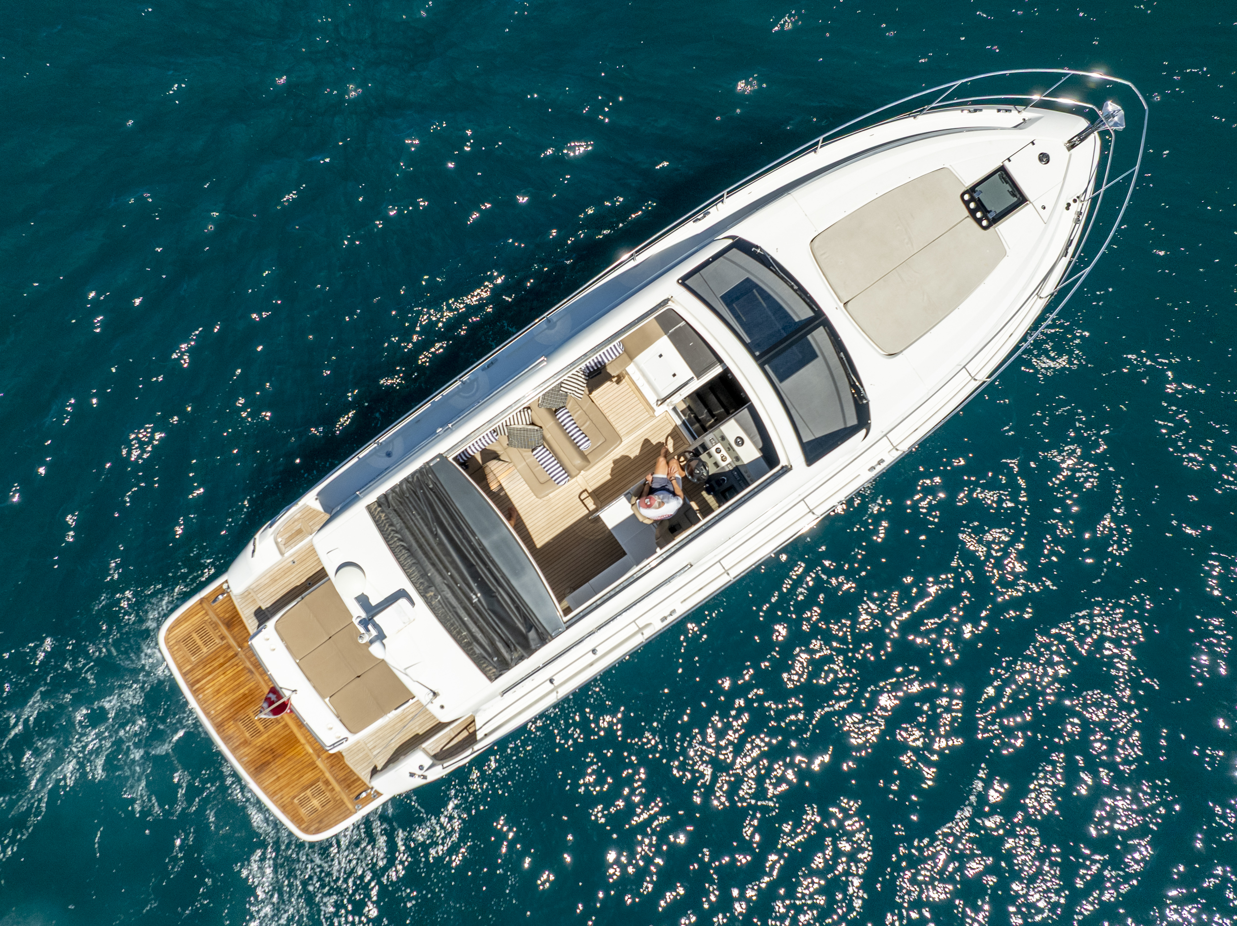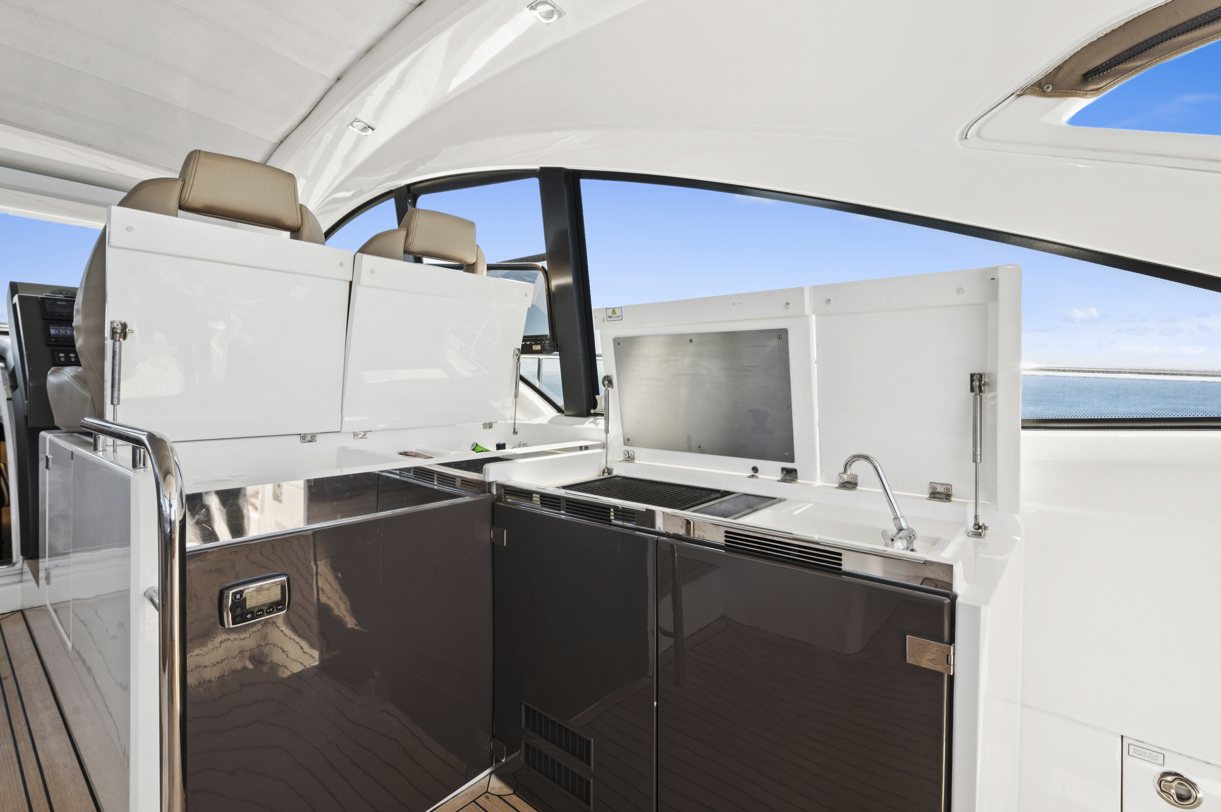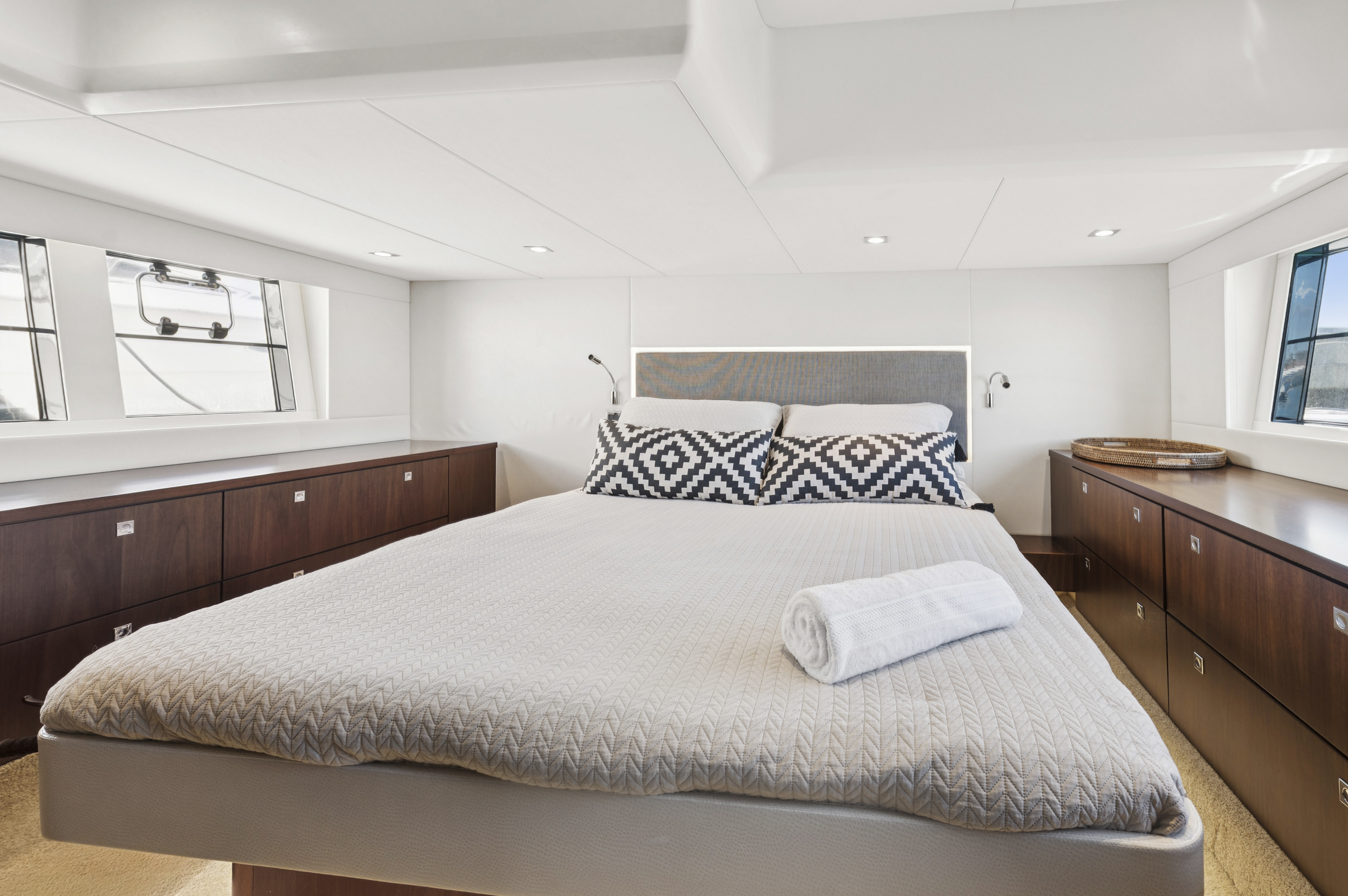 Powered by twin Volvo IPS 600 engines, she delivers effortless acceleration, impressive fuel efficiency, and precise joystick manoeuvrability, making close-quarters handling simple and stress-free. The IPS system provides smooth, confident offshore performance while maintaining outstanding onboard comfort.