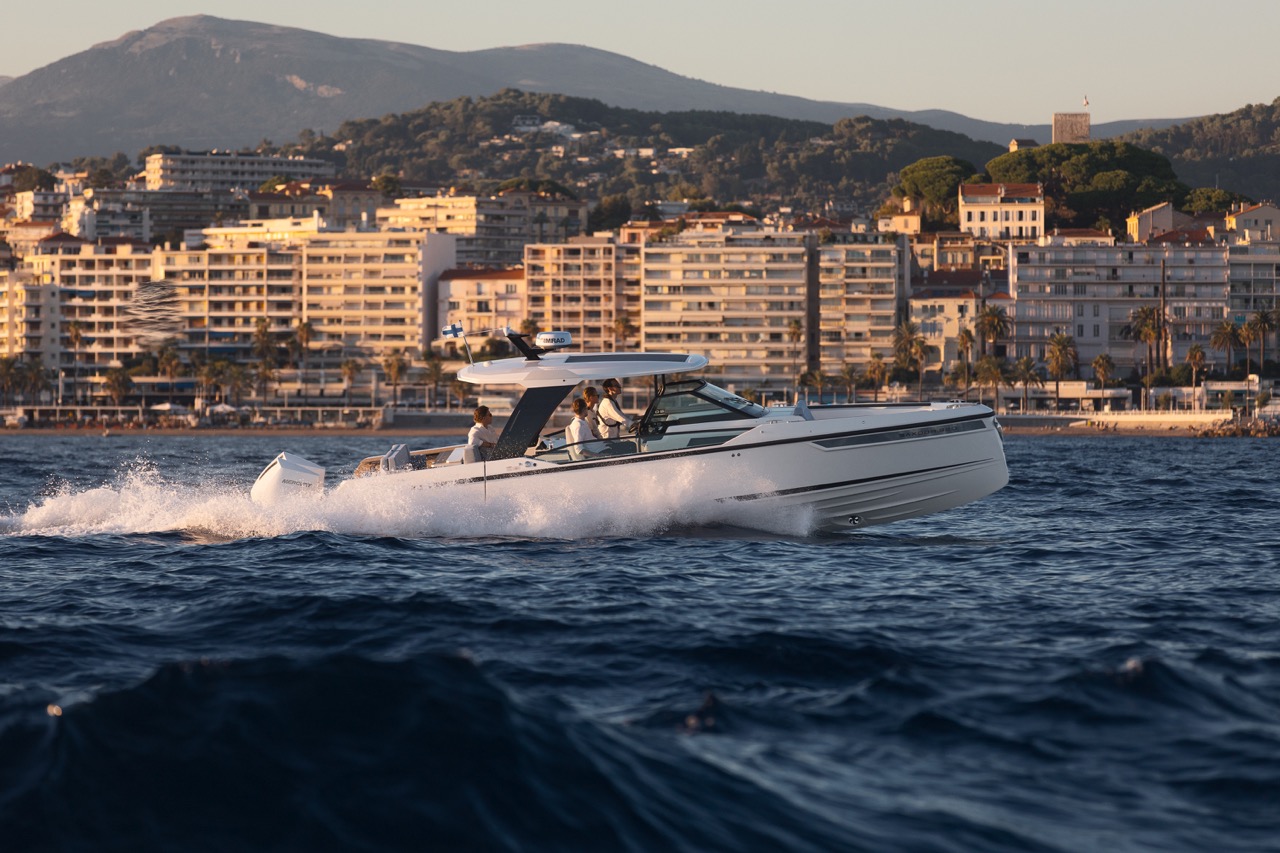 The Saxdor 320 GTO hull is resin infused which results in a lighter and stiffer molding. The twin steps in the hull ensures it maintains a wonderfully flat running attitude when planing. The grip is prodigious.