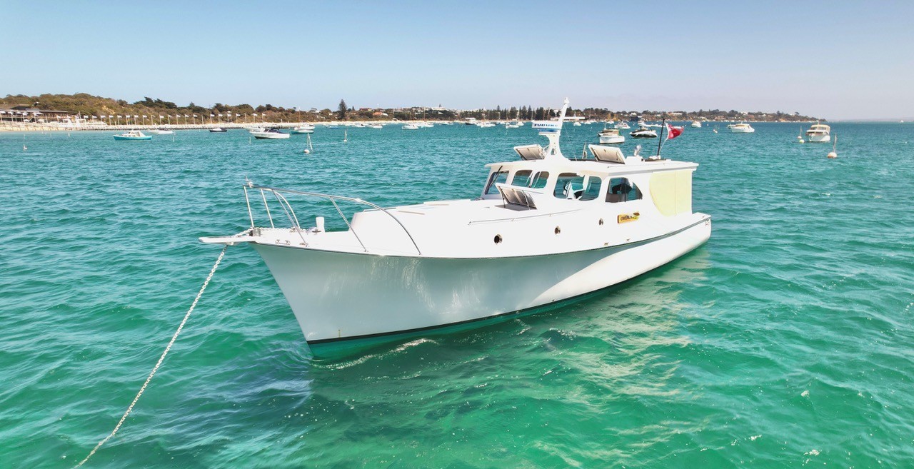 The outcome is a vessel that reads as right in every aspect: perfectly proportioned, quietly elegant and built to endure. These are the unmistakable signs of true workmanship. After a career creating elite high-speed game-fishing boats, Barry turned his skills to a personal signature vessel. Gwendoline is that completed vision.