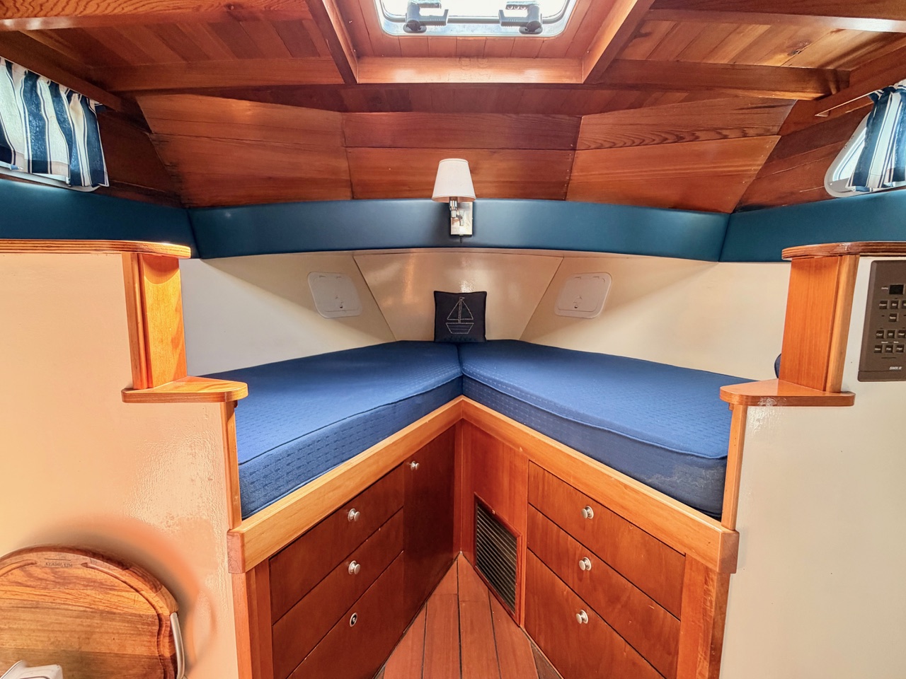 If you are looking for a capable cruiser that is well set up for a comfortable onboard life and love the warmth associated with classic timber boats, then Trilogy is for you.