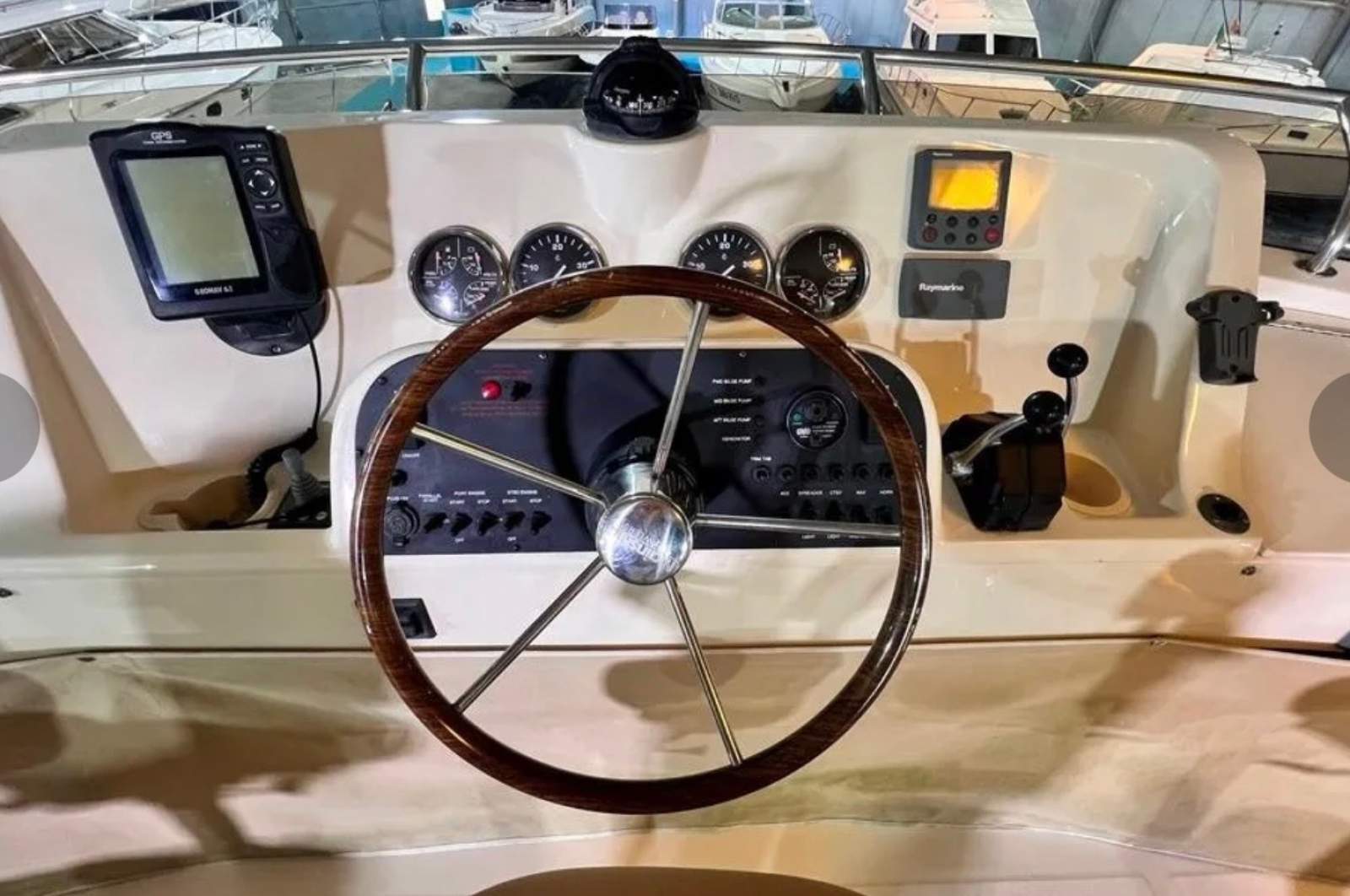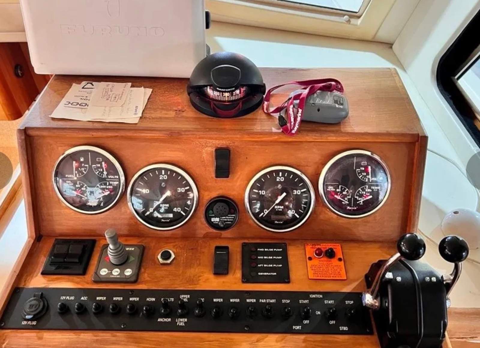 - GPS (Furuno dashboard), Radar (Furuno), Depth sounder (Raymarine depth), Plotter with GPS antenna (Geonav 6 removable on the fly), Autopilot (Raymarine with remote control)