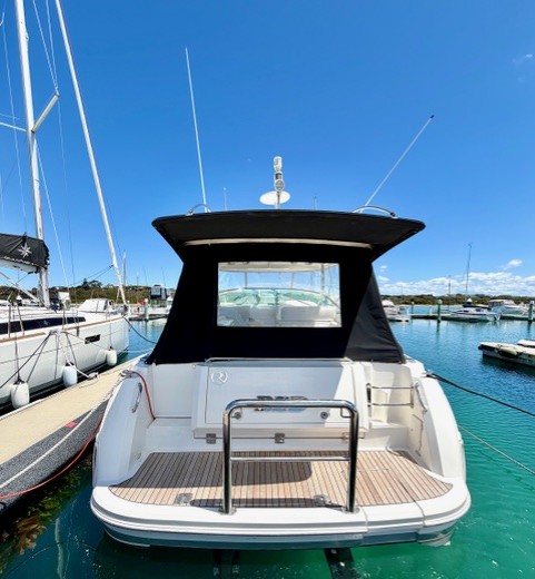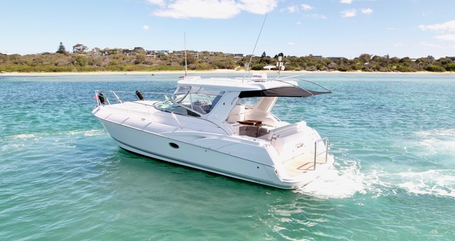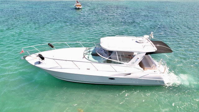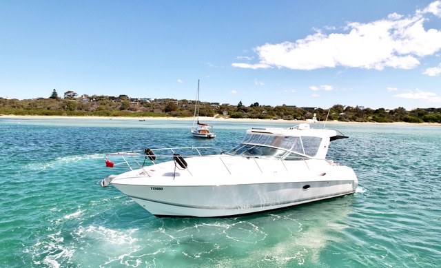 Hard top sports cruiser powered with twin brand new Mercruiser 6.2L V8 350HP petrol with new stern drives and overhauled 6KVA Onan generator.