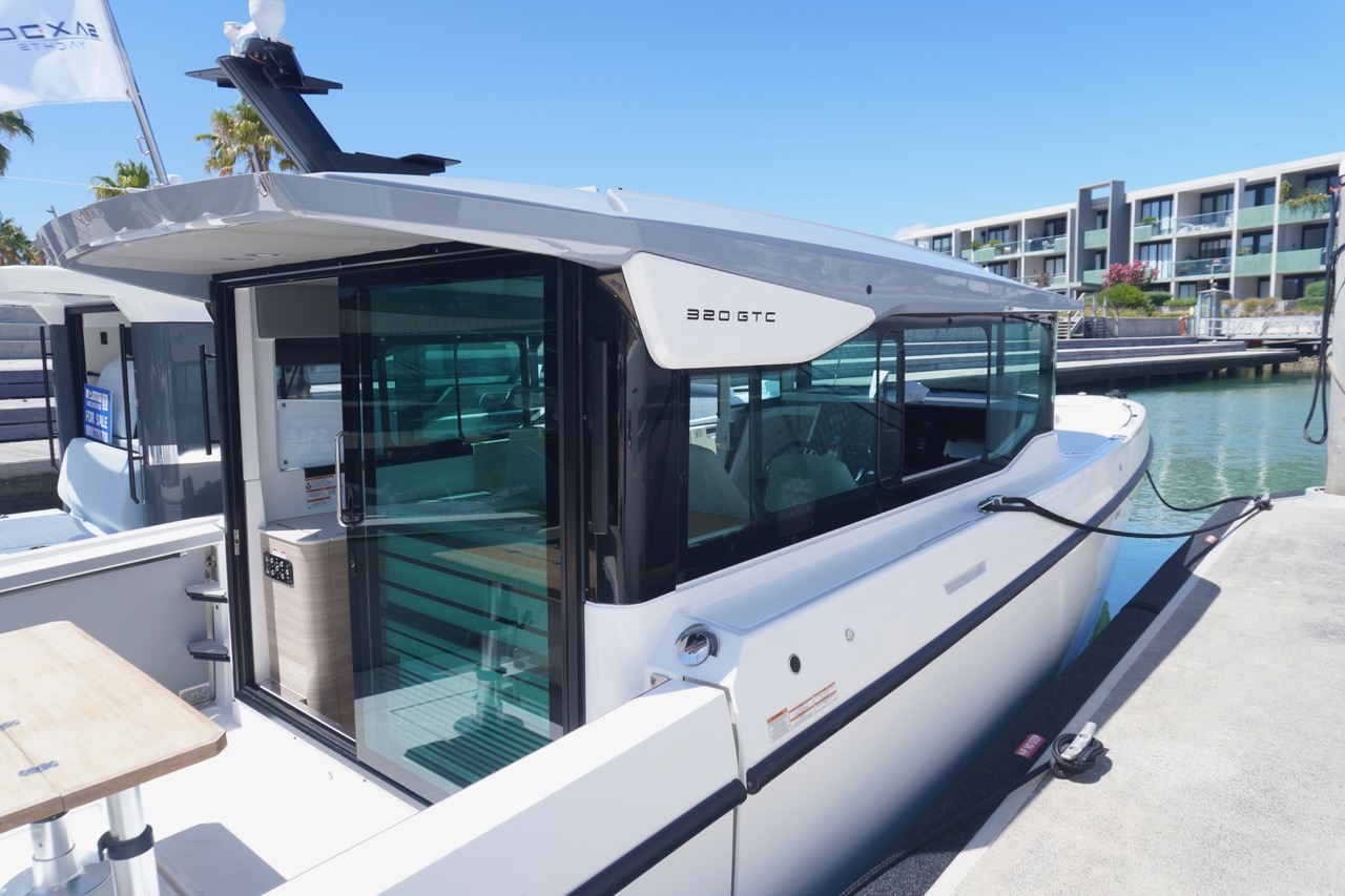The 320 GTC is meant to protect and entertain you. The cabin gives you cover against the sun or the rough waters. The outside lets you enjoy the surroundings.