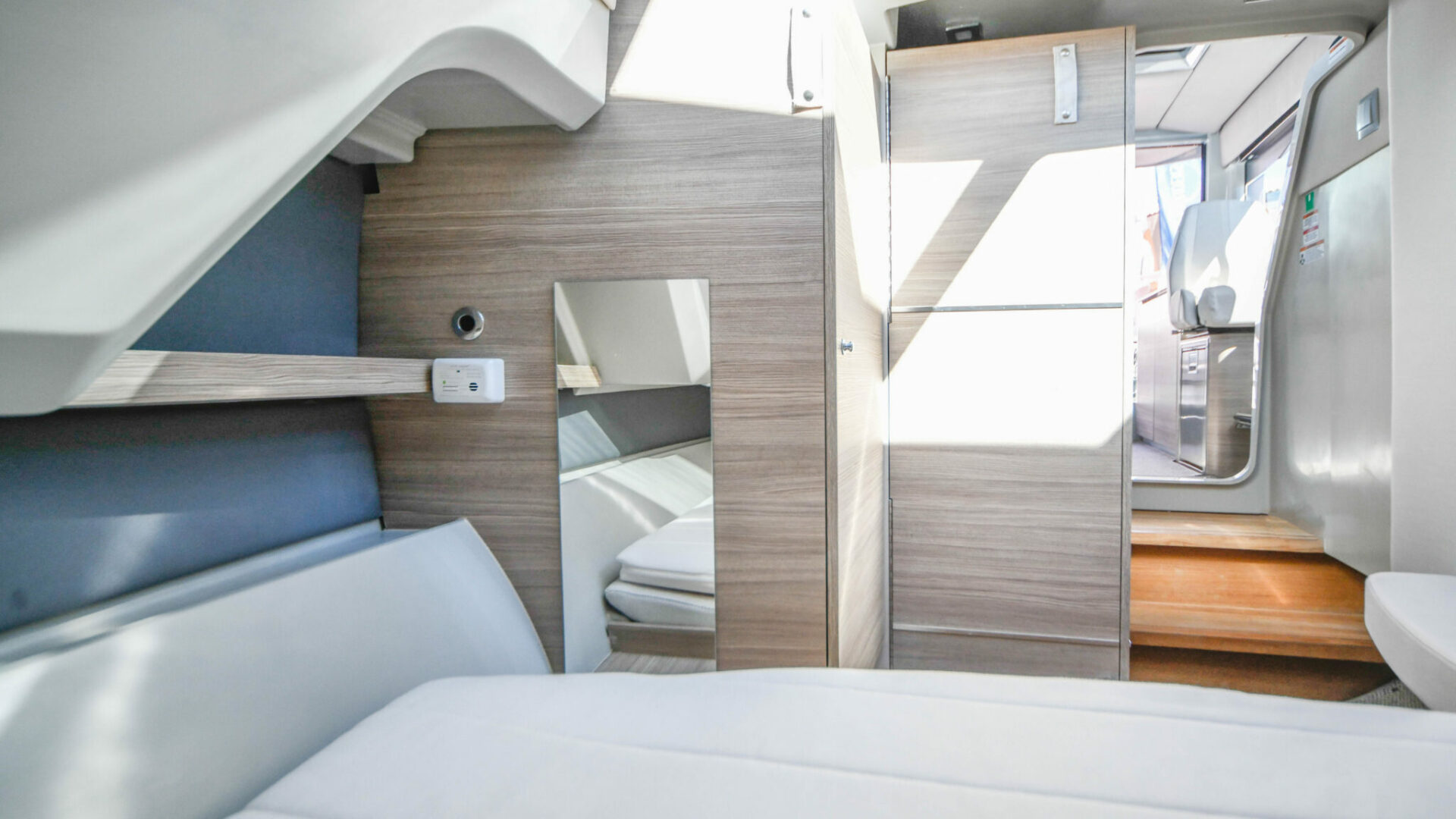 A sanitary corner with a toilet and an additional sink also fits in to make your mornings onboard hassle-free.